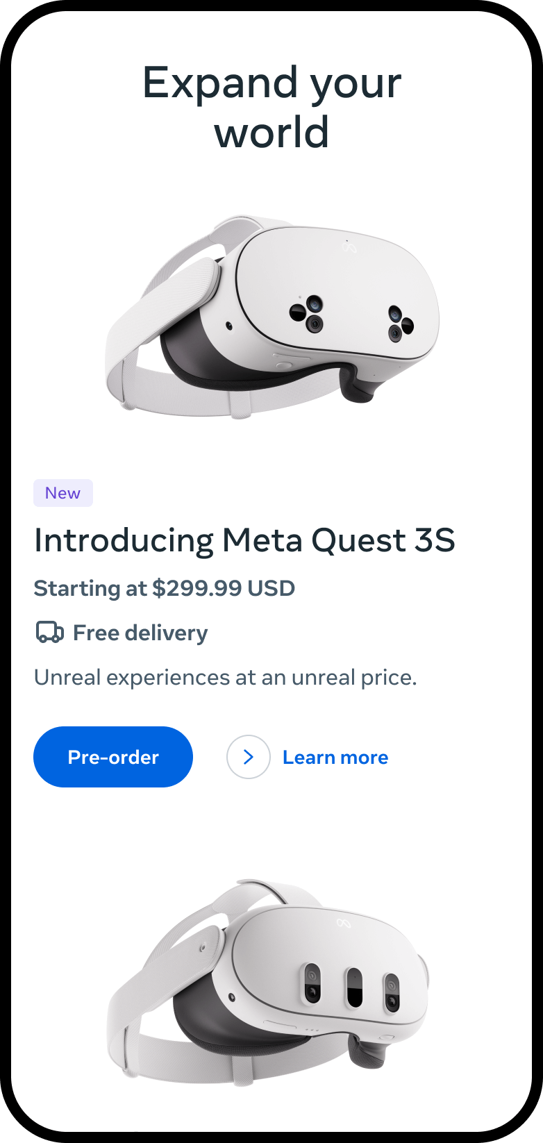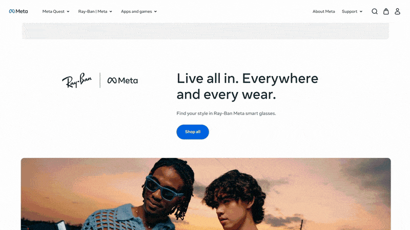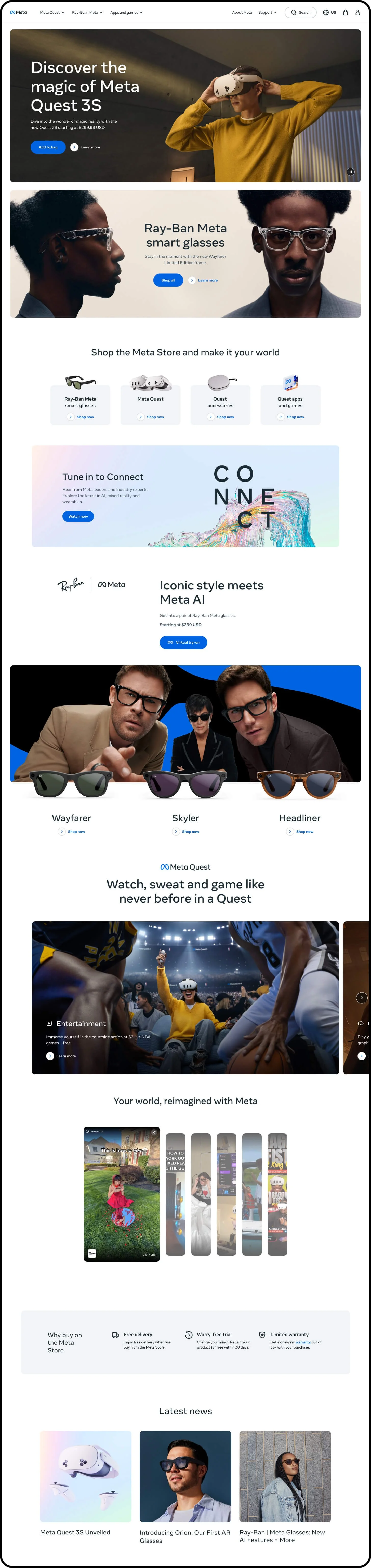 Meta wanted to unify the brands into one cohesive shopping experience under the Meta Store, while still allowing space to share unique stories and individual brand expressions. We created a next-generation e-commerce experience that introduces the world to the Meta portfolio of products in a way that is fresh and innovative, while continuing to prioritize the user experience.